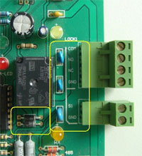如果設(shè)置完畢后,出現(xiàn)以下異常:門開了一半就馬上關(guān)閉了,或者 關(guān)了一半又打開了。 這個(gè)是因?yàn)?,控制器繼電器對(duì)電鎖保護(hù)電路對(duì)自動(dòng)門有副作用,請(qǐng)拆除或者剪斷繼電器旁邊的黑色的二極管。剪斷每個(gè)元件的一個(gè)管腳并翹起即可。(藍(lán)色的壓敏保護(hù)電路不用動(dòng))